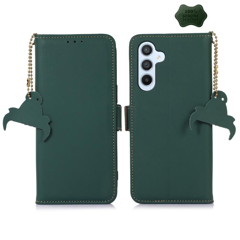 For Samsung Galaxy A05s Genuine Leather Magnetic RFID Leather Phone Case(Green)
