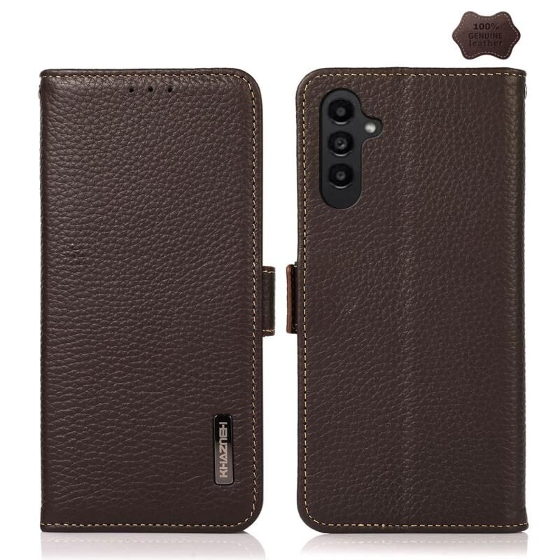 Θήκη κινητού τηλεφώνου Samsung Galaxy A05s KHAZNEH με μαγνητικό κλείσιμο, από γνήσιο δέρμα Litchi και προστασία RFID (Μαύρο)