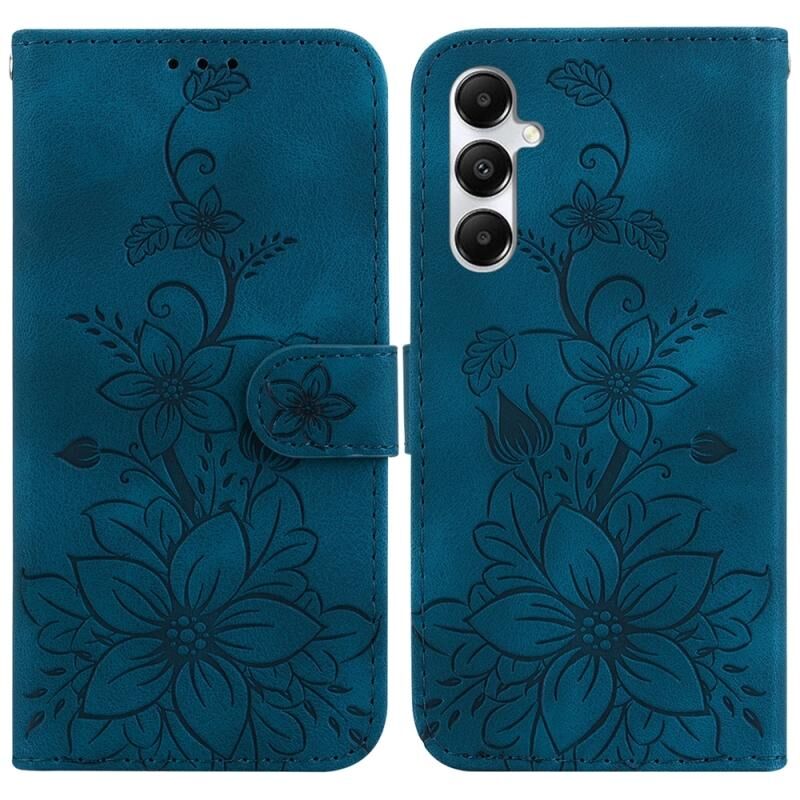 Θήκη τηλεφώνου Samsung Galaxy A05s Lily Embossed Leather (Σκούρο μπλε)