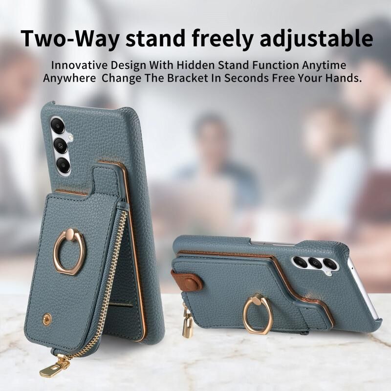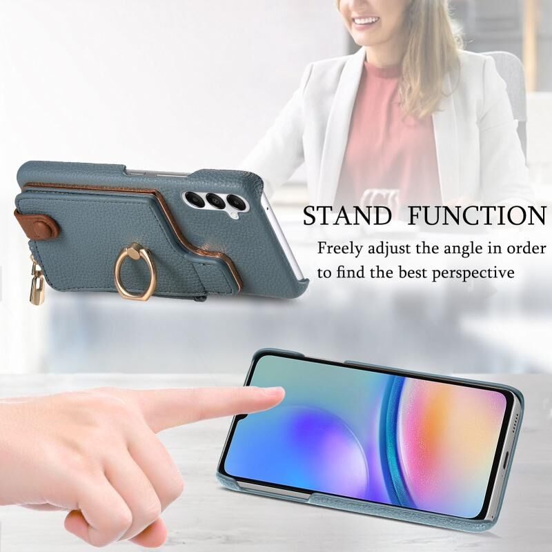 Για Samsung Galaxy A05s Litchi δέρμα λάδι Edge δαχτυλίδι φερμουάρ πορτοφόλι πίσω υπόθεση τηλεφώνου (μπλε)
