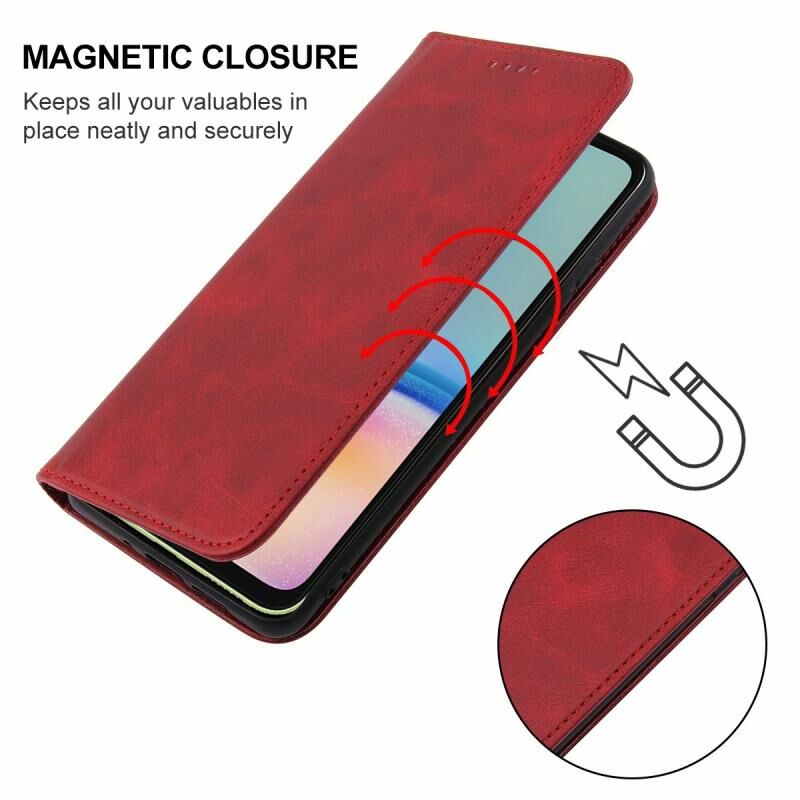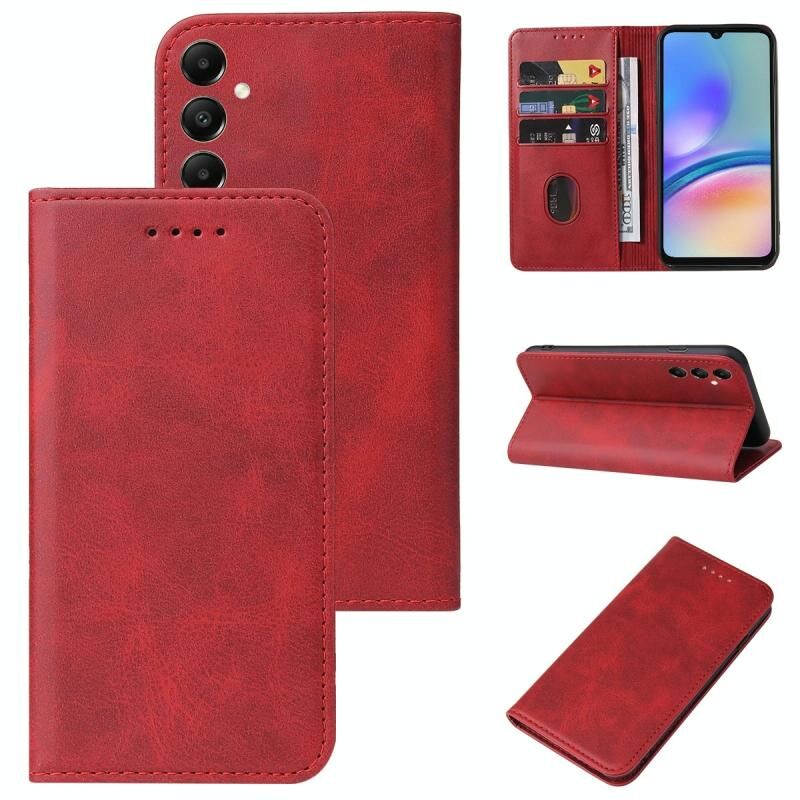 Για Samsung Galaxy A05s Μαγνητικό κλείσιμο δερμάτινη θήκη τηλεφώνου (κόκκινο)