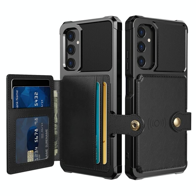 2: Η θήκη πορτοφολιού διαθέτει 4 υποδοχές για κάρτες και 1 κρυφή υποδοχή για κάρτες, οι οποίες μπορούν να χωρέσουν την ταυτότητά σας, την πιστωτική σας κάρτα, τη χρεωστική σας κάρτα, την κάρτα αγορών και πολλά άλλα. Μπορείτε να μεταφέρετε εύκολα τις κάρτες σας χωρίς να βγάλετε το πορτοφόλι σας.