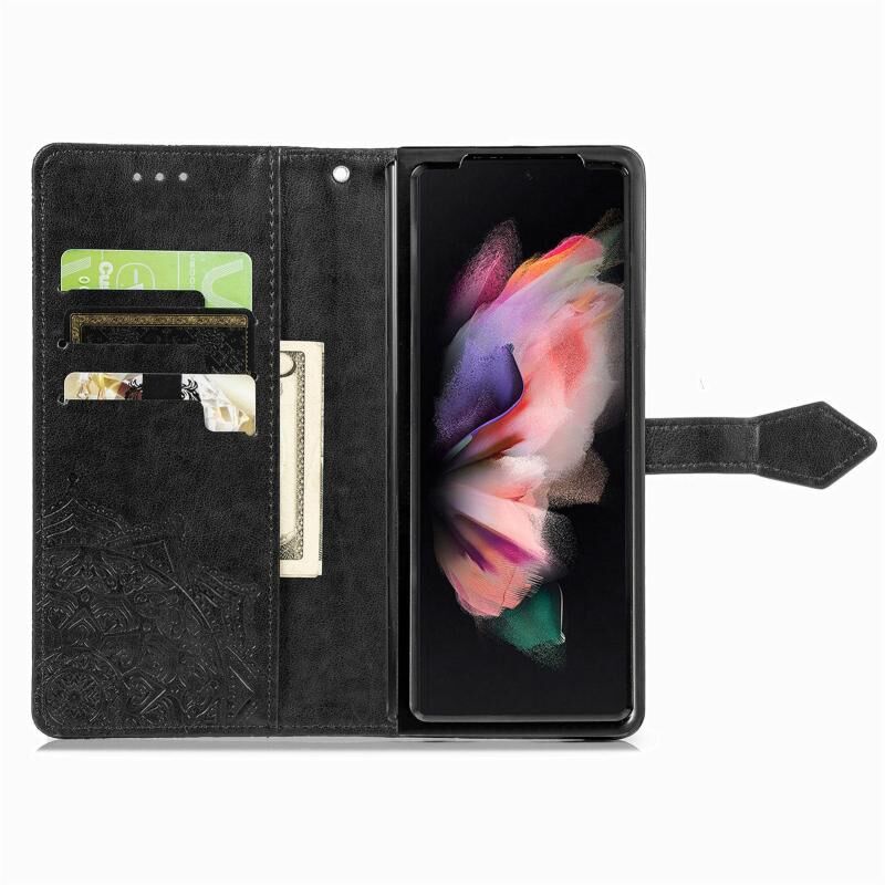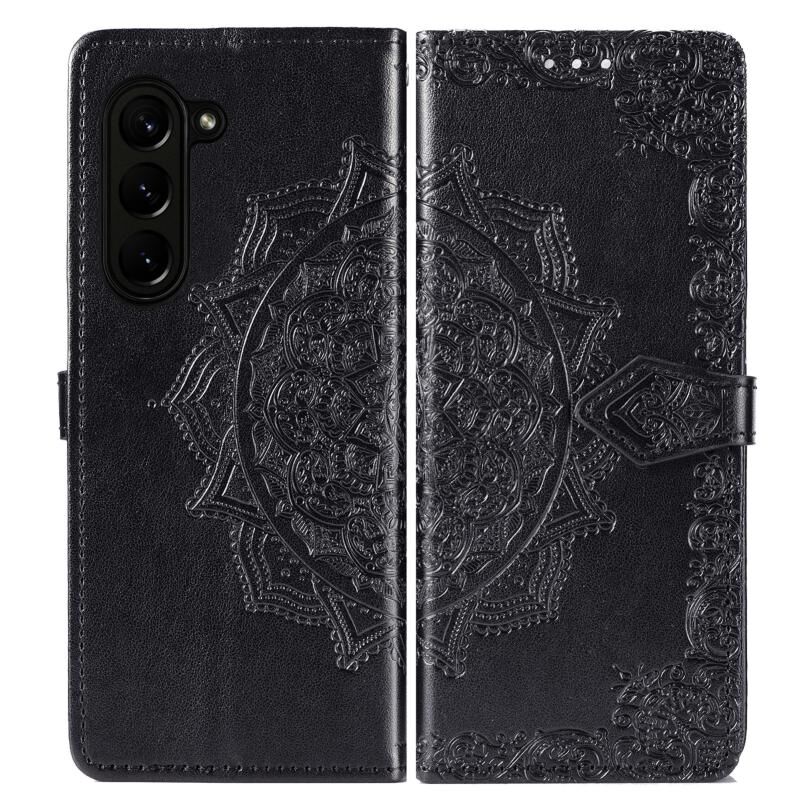 Για Samsung Galaxy A05s Mandala λουλούδι ανάγλυφο δερμάτινη θήκη τηλεφώνου (μαύρο)