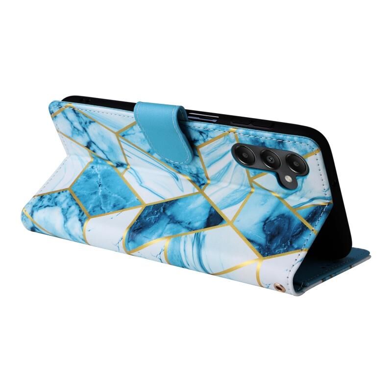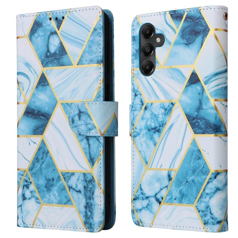 Θήκη τηλεφώνου Samsung Galaxy A05s από δέρμα με ραφή μαρμάρου και μπρονζέ φινίρισμα (Μπλε)
