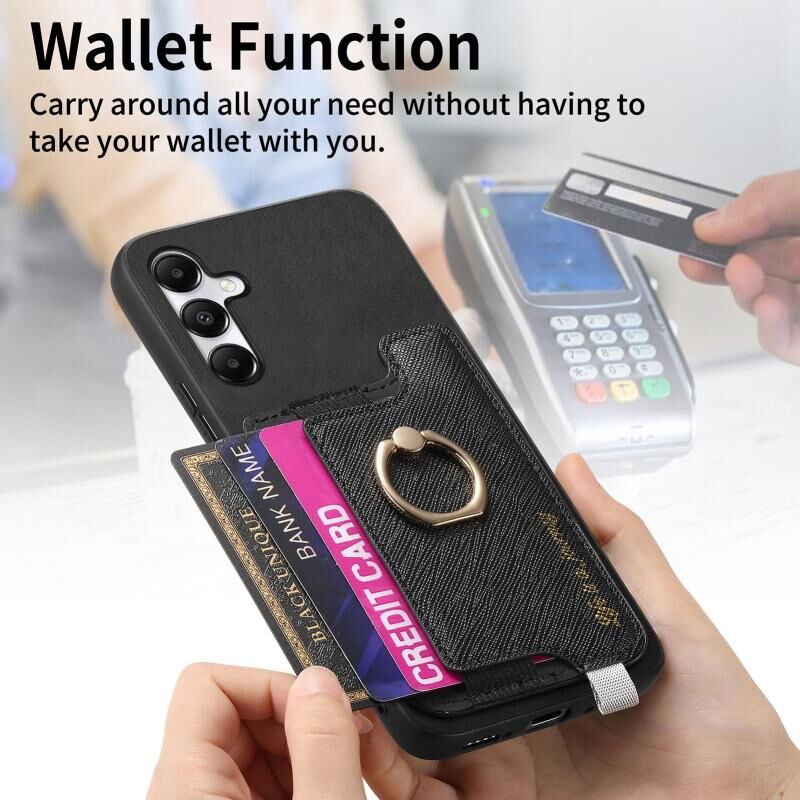 Θήκη κινητού Samsung Galaxy A05s Retro Cross από δέρμα με δακτύλιο, οριζόντια θήκη κάρτας, συμβατή με MagSafe (Ροζ)