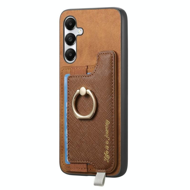 Θήκη κινητού Samsung Galaxy A05s Retro Cross από δέρμα με δακτύλιο, οριζόντια θήκη κάρτας, συμβατή με MagSafe (Ροζ)