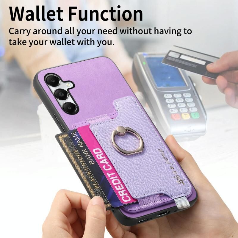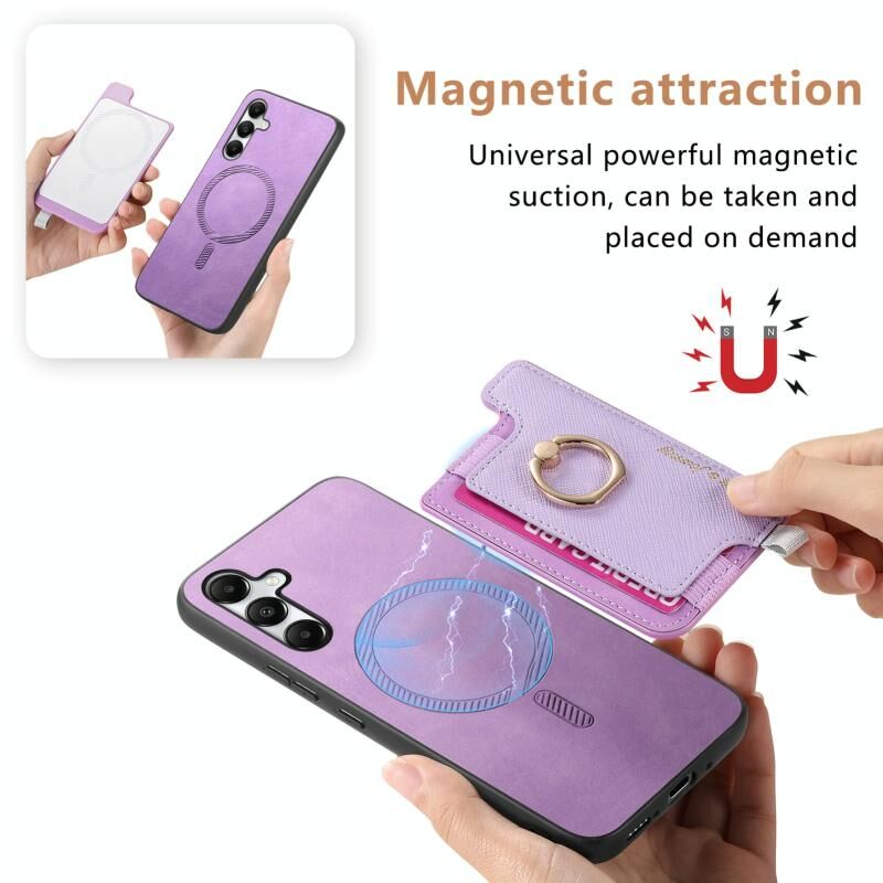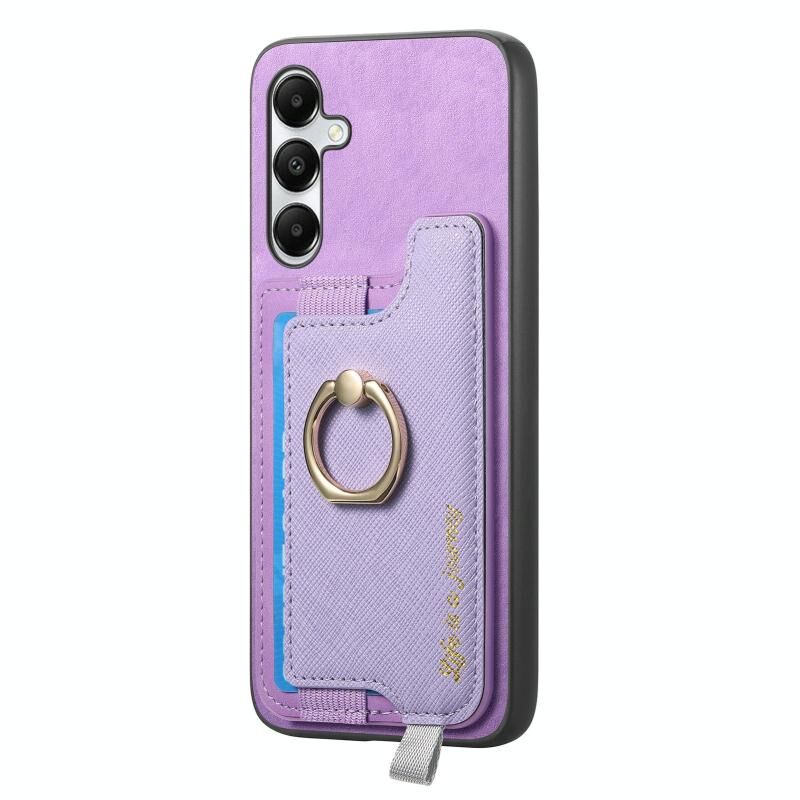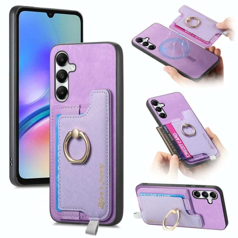 Θήκη κινητού Samsung Galaxy A05s Retro Cross από δέρμα με δακτύλιο, οριζόντια θήκη κάρτας, συμβατή με MagSafe (Μωβ)