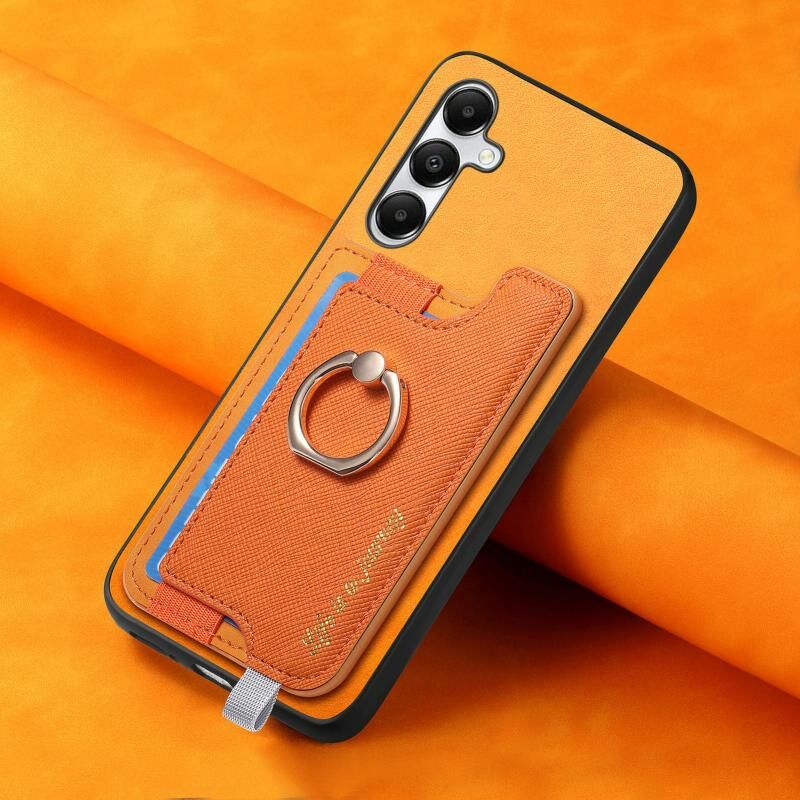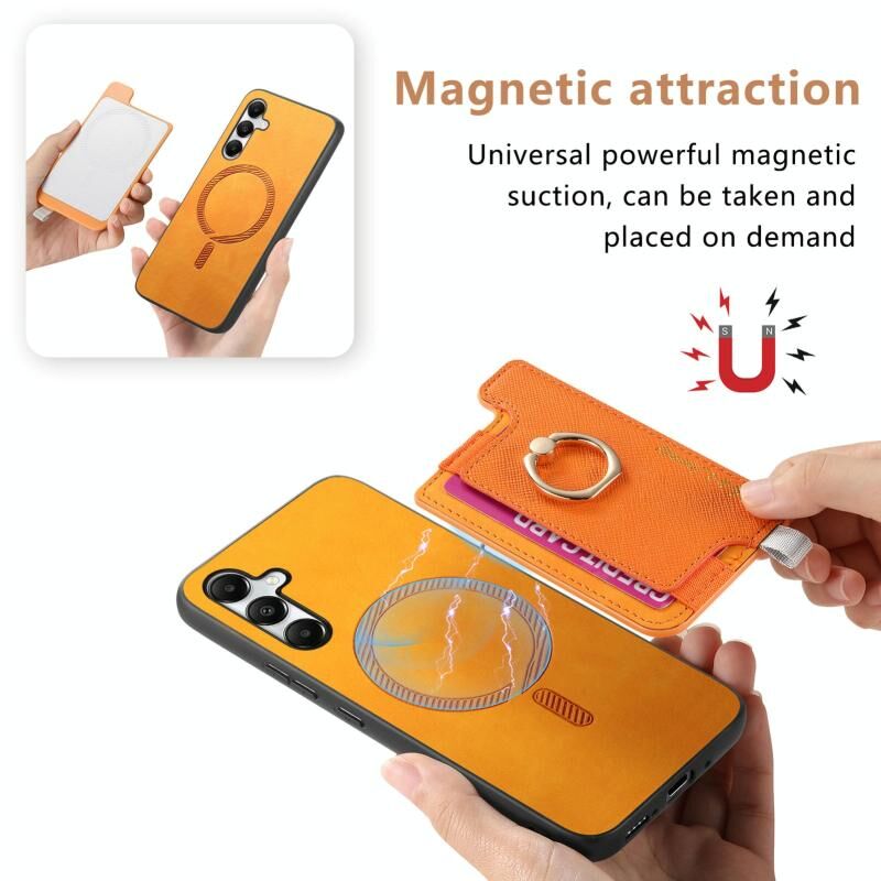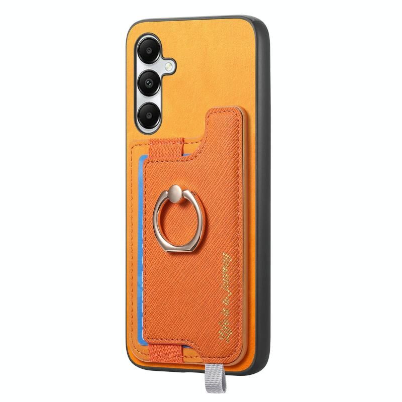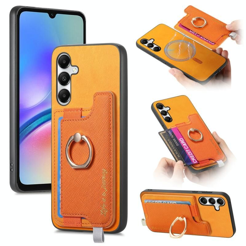 Θήκη κινητού Samsung Galaxy A05s Retro Cross από δέρμα με δακτύλιο, οριζόντια θήκη κάρτας, συμβατή με MagSafe (Ροζ)