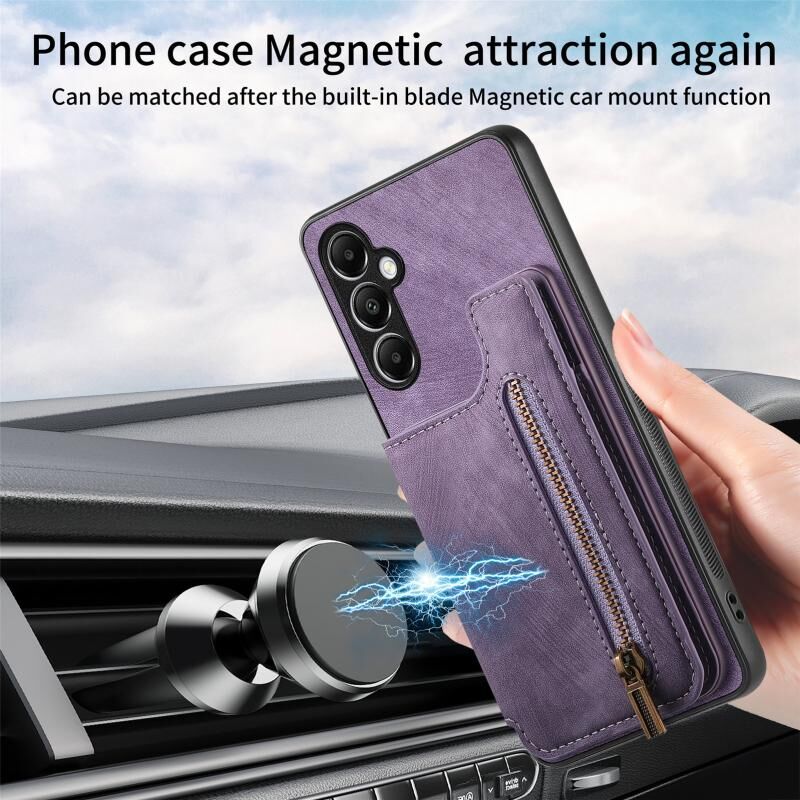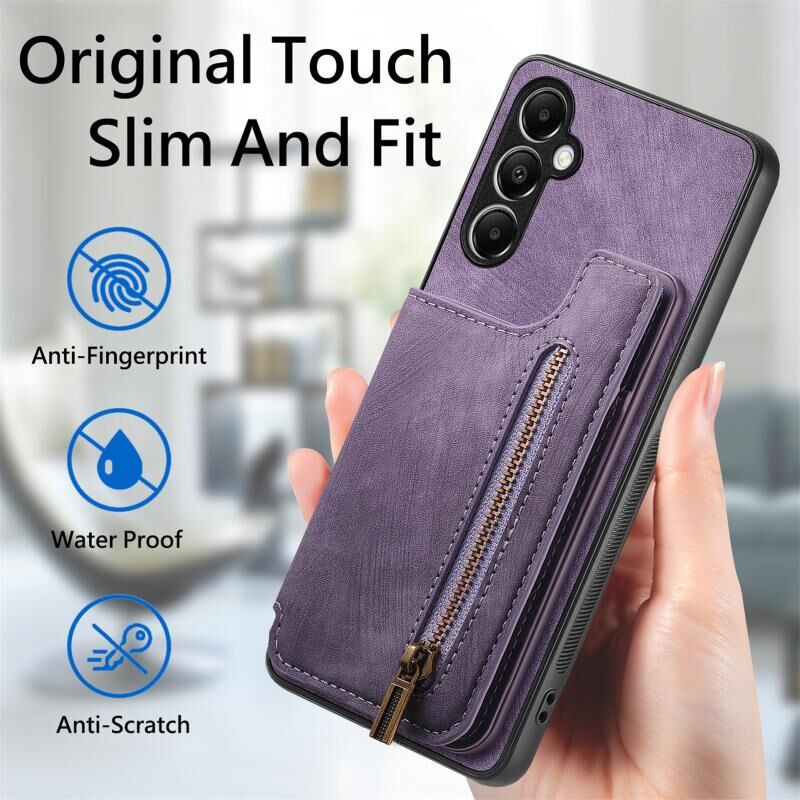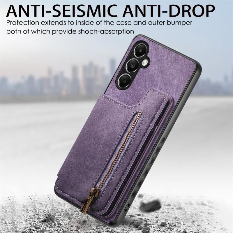 Για Samsung Galaxy A05s Ρετρό δέρμα φερμουάρ πορτοφόλι πίσω θήκη τηλεφώνου (μωβ)