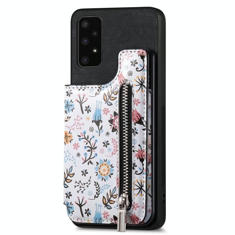 Για Samsung Galaxy A05s Ρετρό ζωγραφισμένο φερμουάρ πορτοφόλι πίσω θήκη τηλεφώνου (μαύρο)