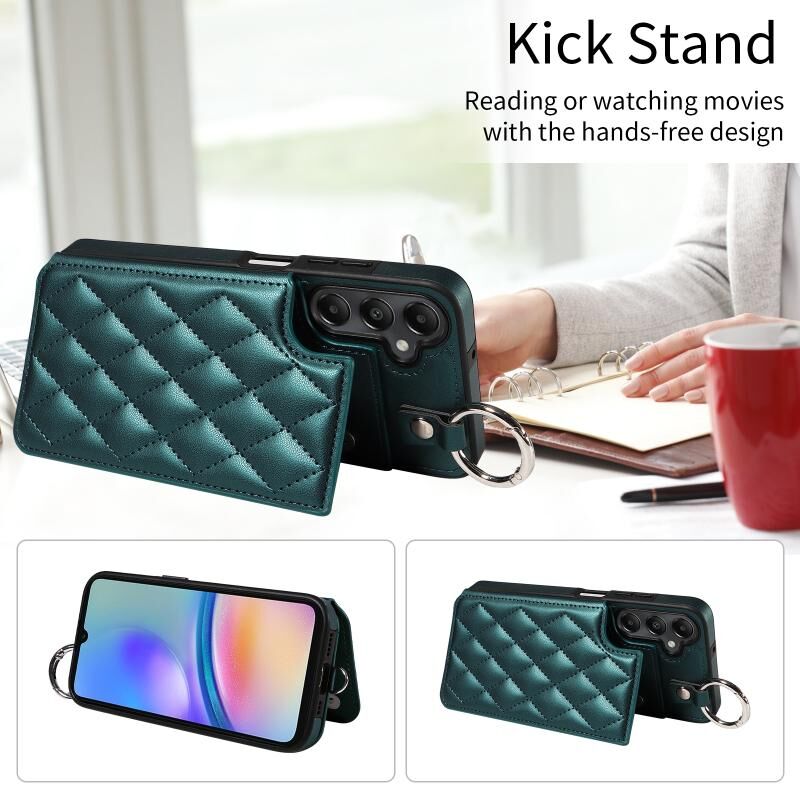 Για Samsung Galaxy A05s Rhombic υφή κάρτα τσάντα υπόθεση τηλεφώνου με σύντομο κορδόνι (πράσινο)