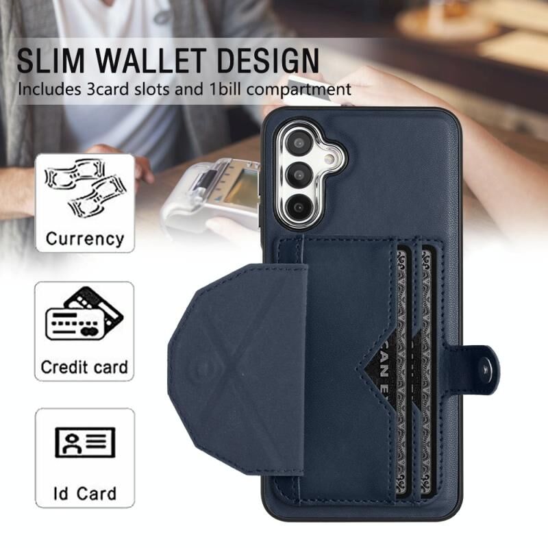 Για Samsung Galaxy A05s Ανθεκτική δερμάτινη θήκη τηλεφώνου με θήκη κάρτας (μπλε)