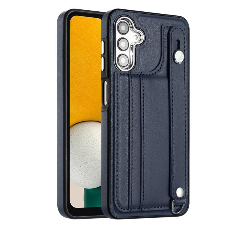 Για το Samsung Galaxy A05s Αδιάβροχη δερμάτινη θήκη τηλεφώνου με λουράκι καρπού (μπλε)