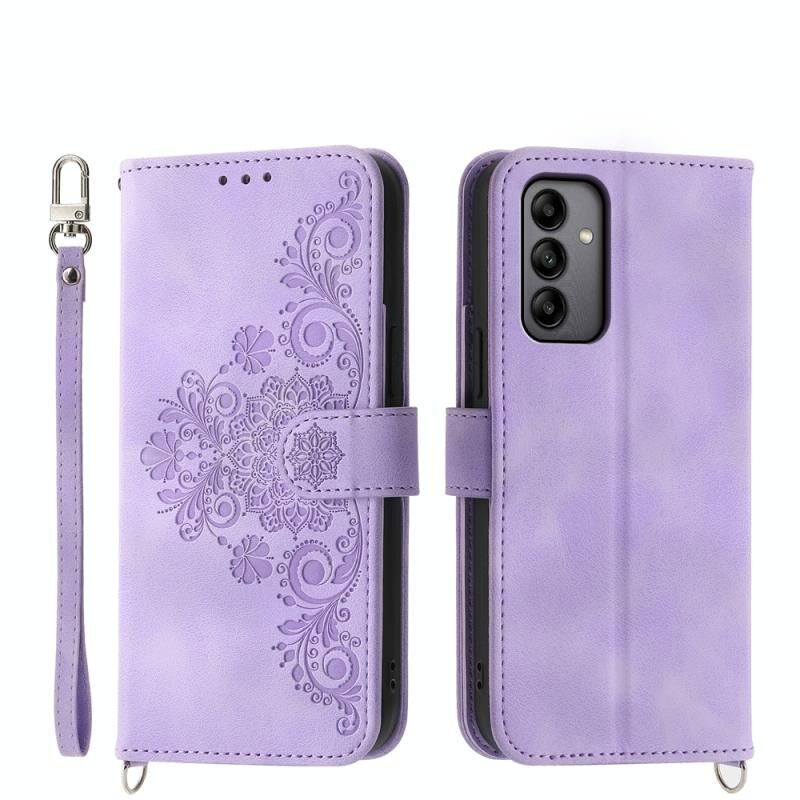 Για Samsung Galaxy A05s Skin-feel Λουλούδια ανάγλυφο πορτοφόλι δερμάτινη θήκη τηλεφώνου (μωβ)