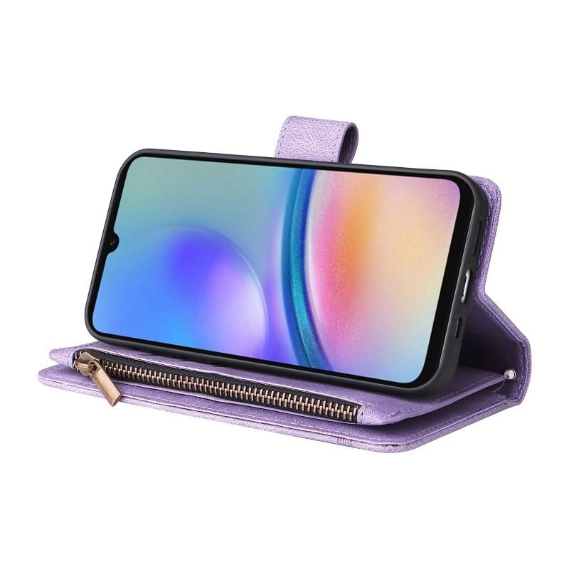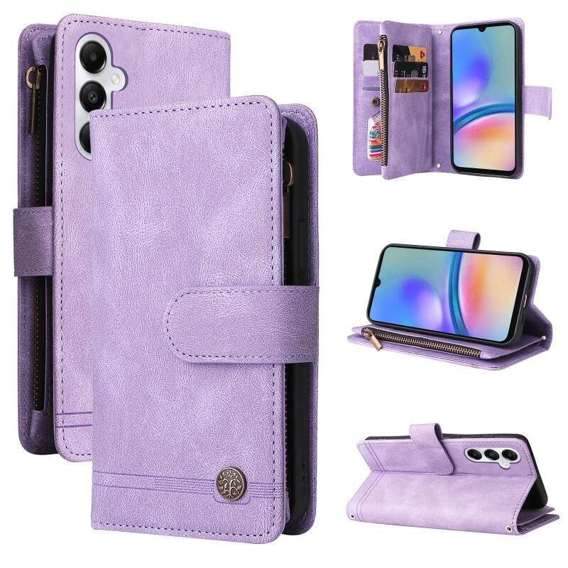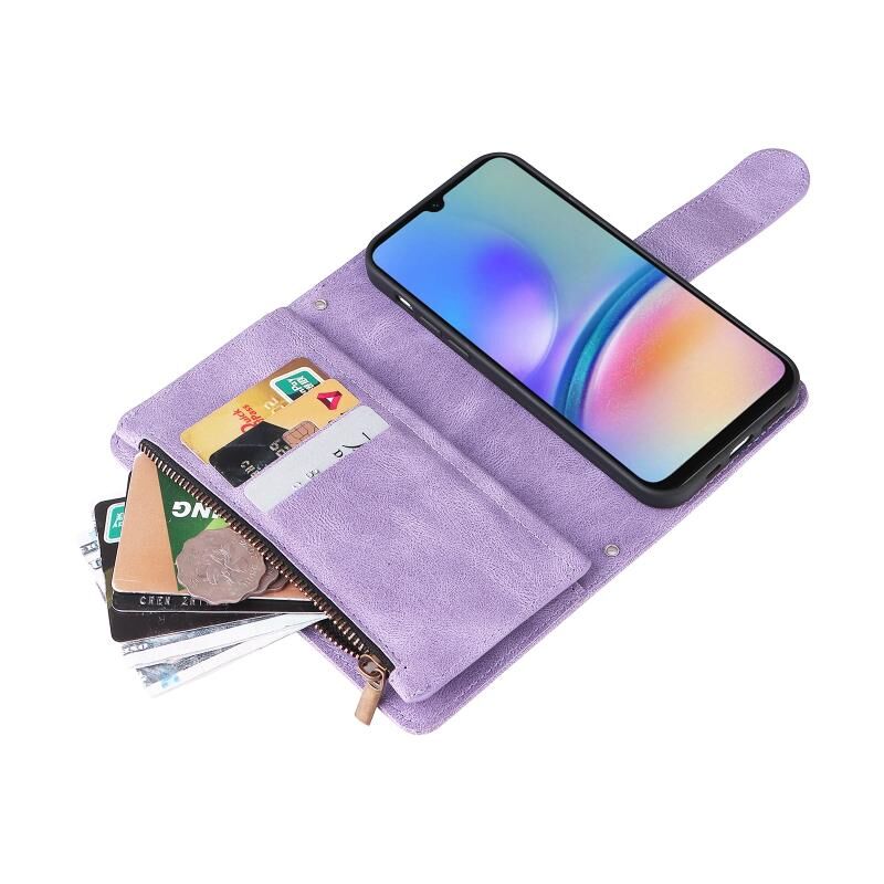 Για το Samsung Galaxy A05s δέρμα αίσθηση Multi-Card πορτοφόλι φερμουάρ δερμάτινη θήκη τηλεφώνου (μωβ)