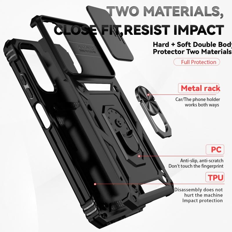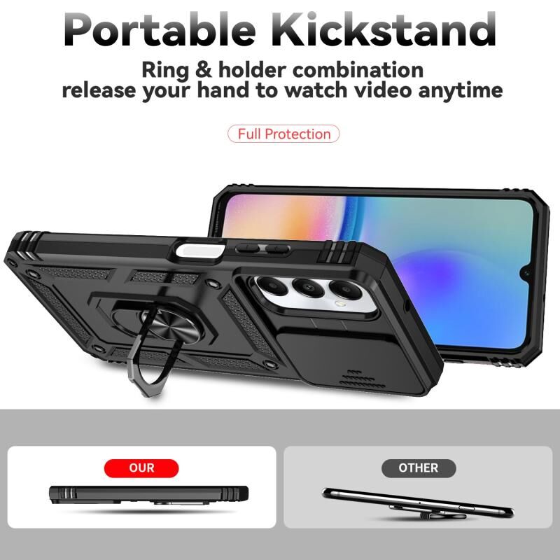 Για Samsung Galaxy A05s Συρόμενη θήκη τηλεφώνου με προστατευτικό κάλυμμα κάμερας (Μαύρο)