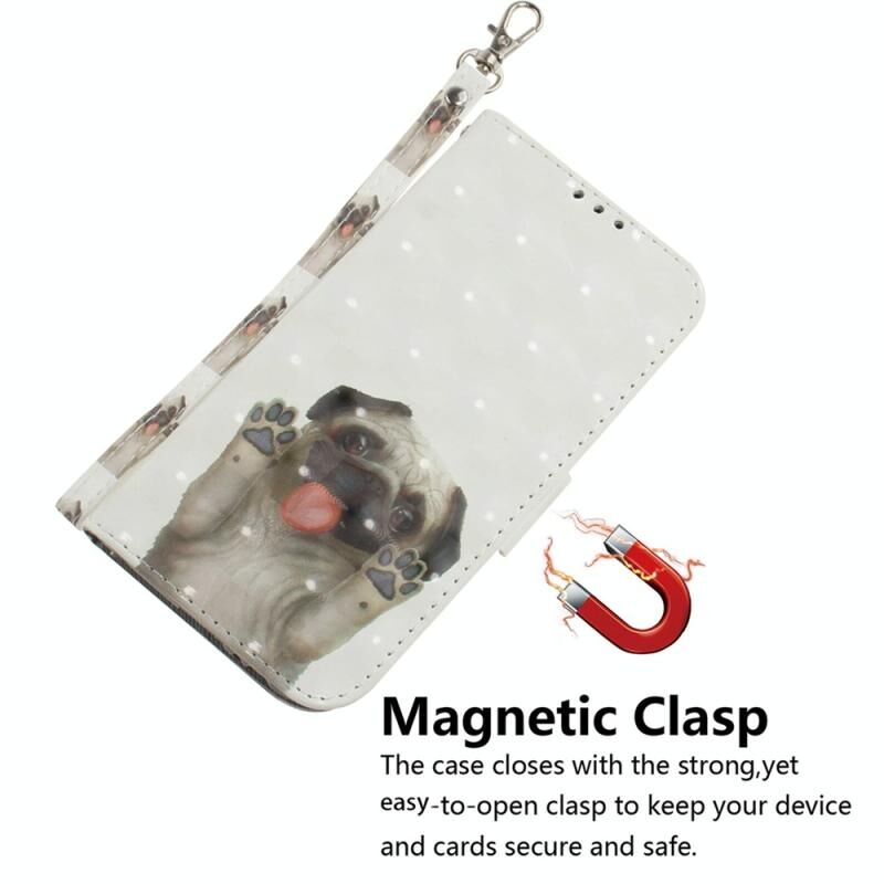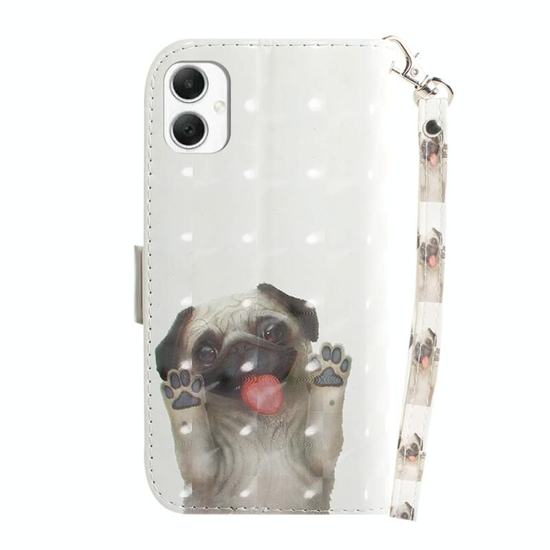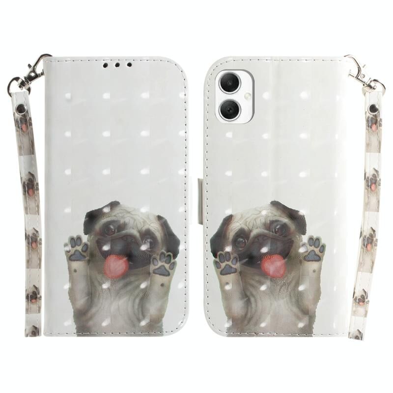 Θήκη τηλεφώνου Samsung Galaxy A06 4G 3D πολύχρωμη οριζόντια δερμάτινη (Pug)