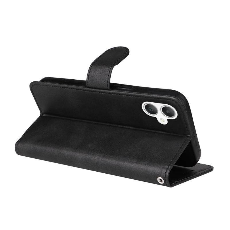Θήκη τηλεφώνου Samsung Galaxy A06 4G / 5G, δερμάτινη με αναδιπλούμενο καπάκι, υφή μοσχαρίσιου δέρματος (Μαύρο)