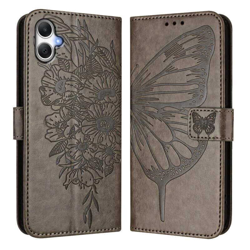 Θήκη τηλεφώνου δερμάτινη με ανάγλυφο σχέδιο πεταλούδας για Samsung Galaxy A06 4G / 5G (Γκρι)