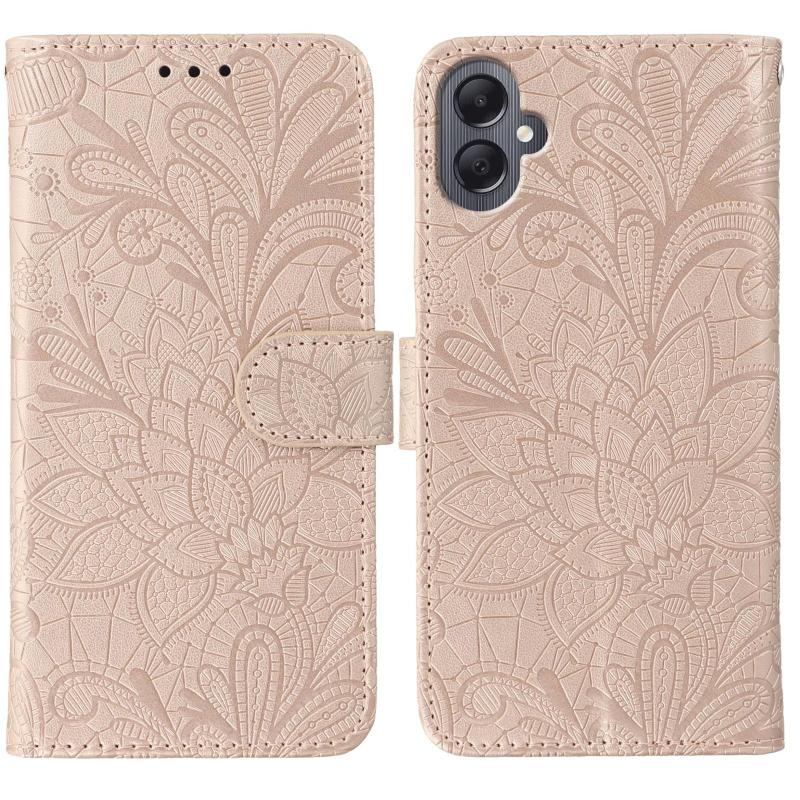 For Samsung Galaxy A06 4G / 5G Lace Flower Embossing Flip Leather Phone Case(Rose Gold)