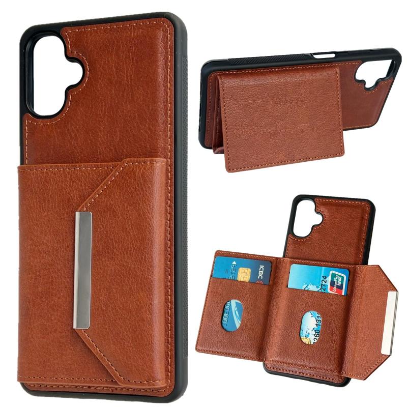 For Samsung Galaxy A06 4G / 5G Solid Color Metal Buckle Card Slots Bag Phone Case(Brown)