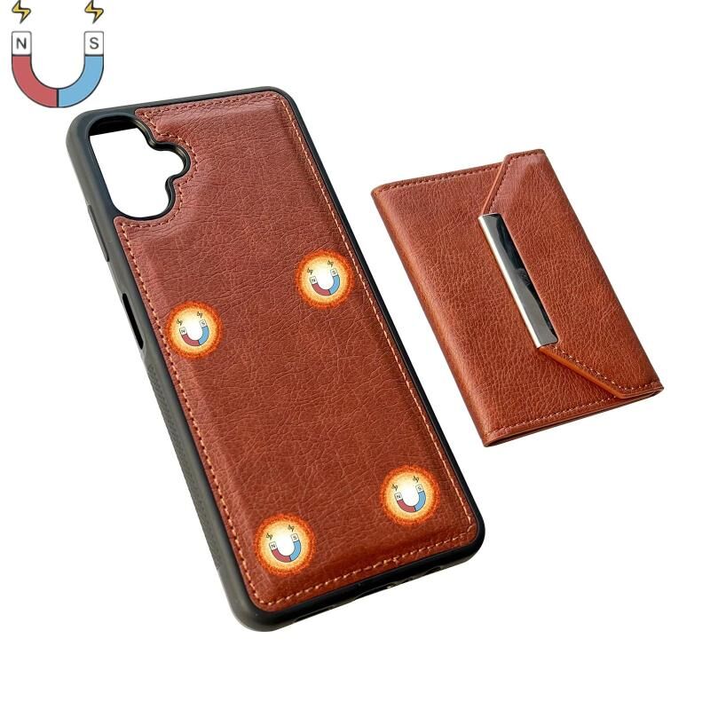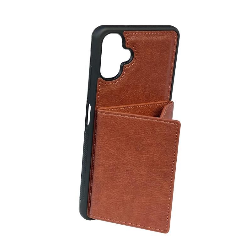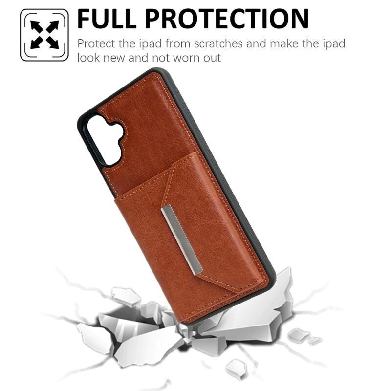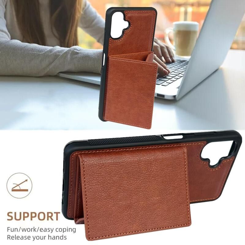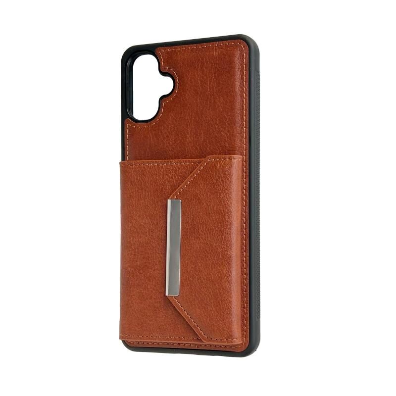 Θήκη κινητού τηλεφώνου για Samsung Galaxy A06 4G / 5G με μονόχρωμη μεταλλική αγκράφα και θήκες για κάρτες (Καφέ)