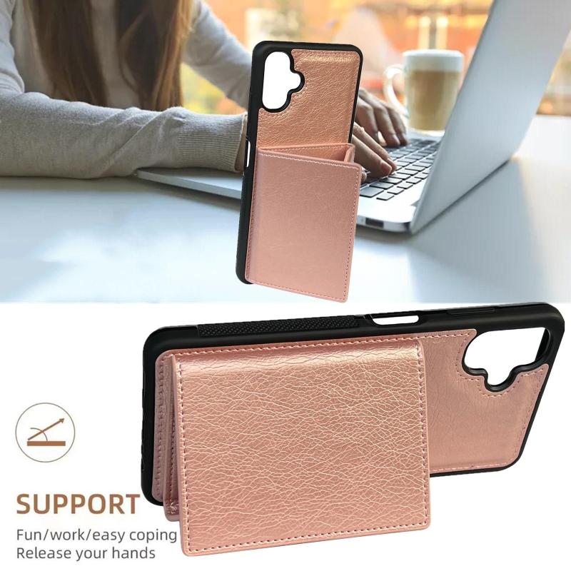 For Samsung Galaxy A06 4G / 5G Solid Color Metal Buckle Card Slots Bag Phone Case(Rose Gold)