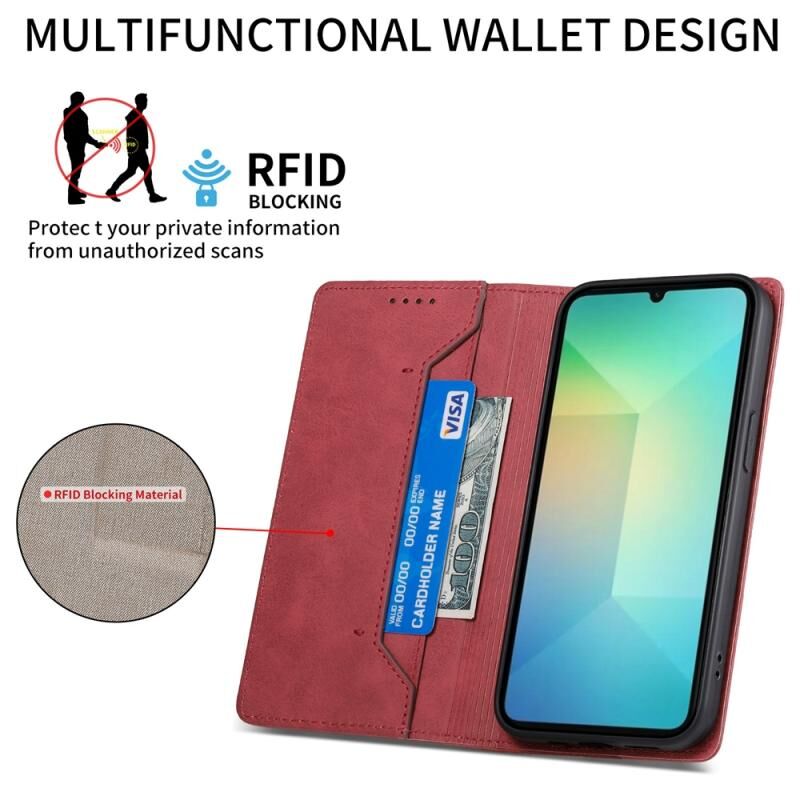 Για Samsung Galaxy A06 4G Business Solid Color Μαγνητική RFID δερμάτινη θήκη τηλεφώνου (κόκκινο)