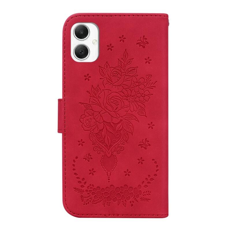 Για Samsung Galaxy A06 4G Πεταλούδα Rose ανάγλυφη δερμάτινη θήκη τηλεφώνου (κόκκινο)
