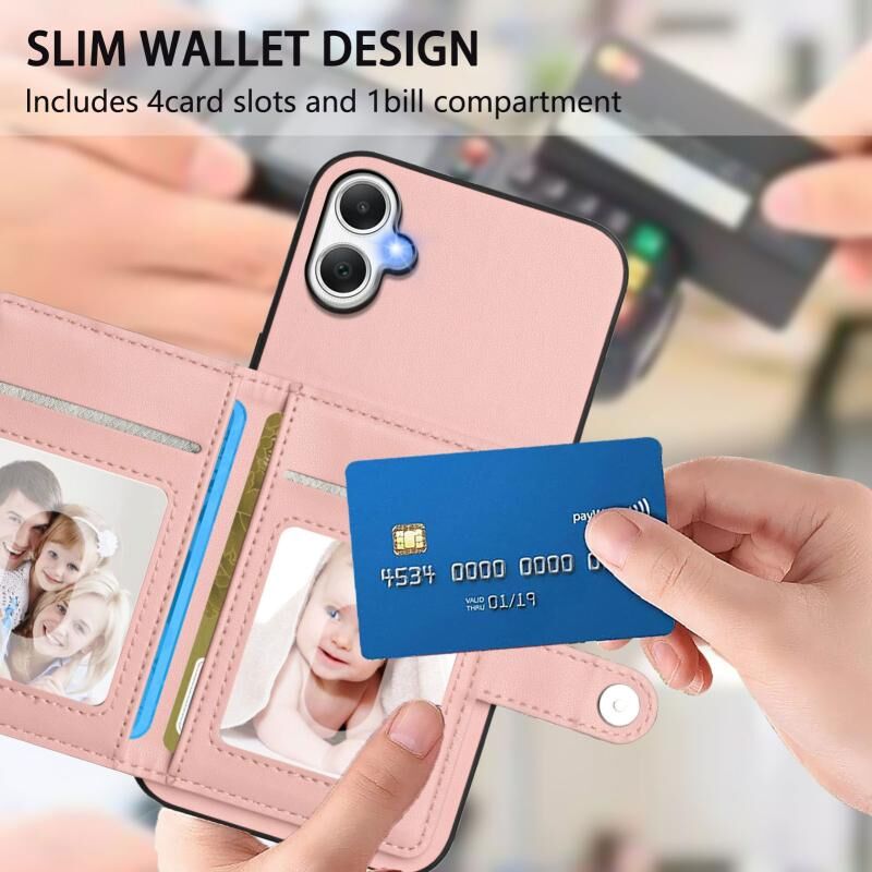 Θήκη κινητού τηλεφώνου με κάρτες και προστασία RFID κατά της κλοπής για Samsung Galaxy A06 4G (Ροζ)