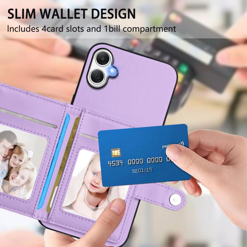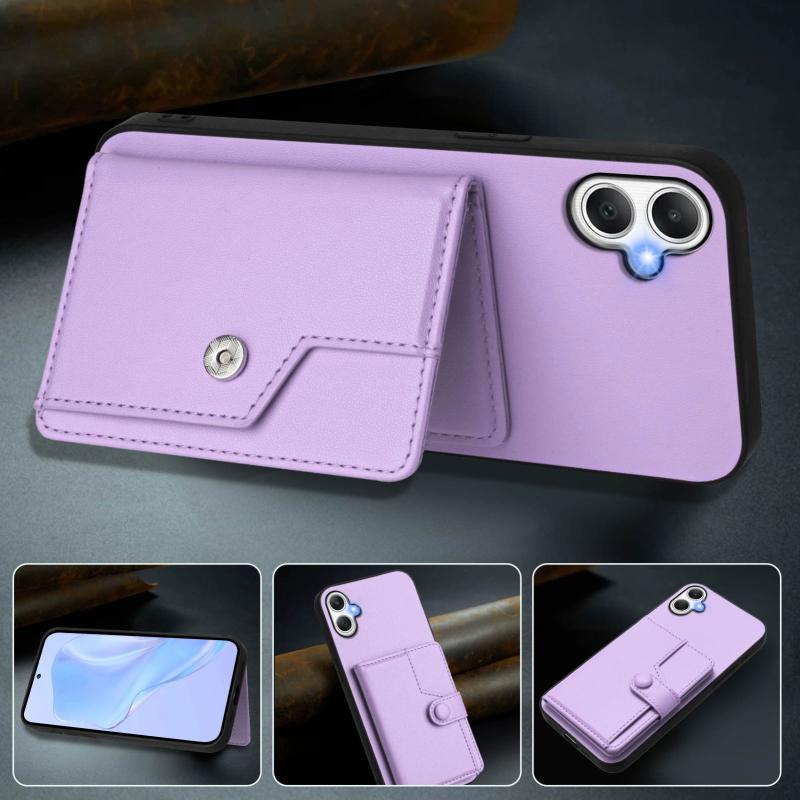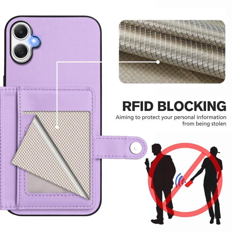 For Samsung Galaxy A06 4G Button Card Bag RFID Anti-theft Phone Case(Purple)