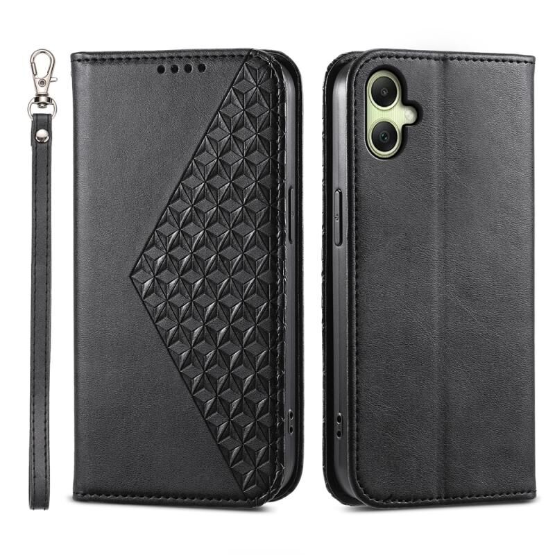 Για Samsung Galaxy A06 4G Cubic Grid Calf Texture μαγνητική δερμάτινη θήκη τηλεφώνου (Μαύρο)