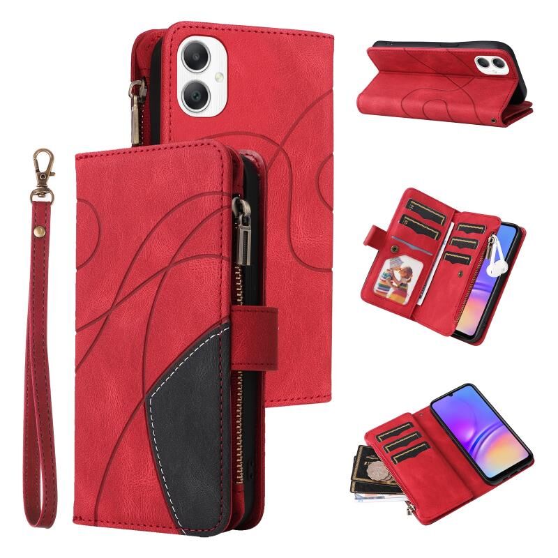 Για Samsung Galaxy A06 4G Dual-χρώμα 9 υποδοχές καρτών φερμουάρ πορτοφόλι δερμάτινη θήκη τηλεφώνου (κόκκινο)