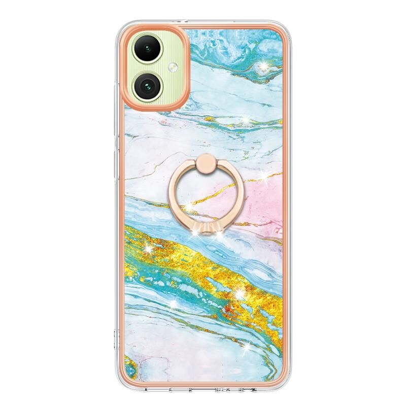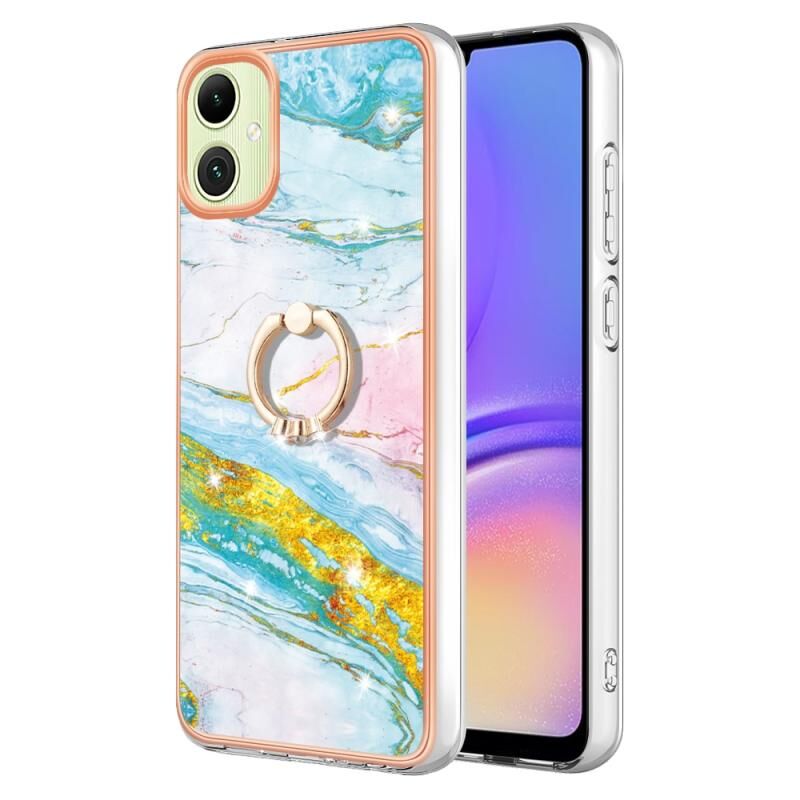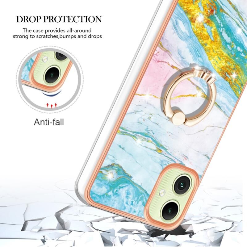 Θήκη κινητού τηλεφώνου Samsung Galaxy A06 4G με Ηλεκτρολυτική Επικάλυψη, σχέδιο Μάρμαρου IMD, από TPU με Δακτύλιο Στήριξης (Λευκό 006)