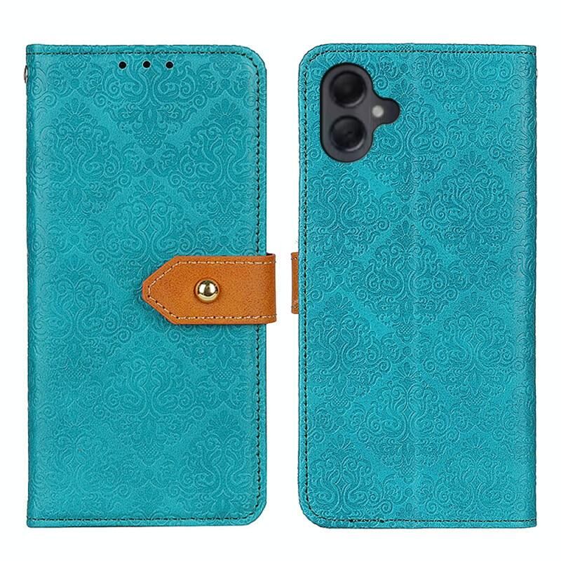 Για Samsung Galaxy A06 4G Ευρωπαϊκή Floral ανάγλυφη δερμάτινη θήκη τηλεφώνου (μπλε)