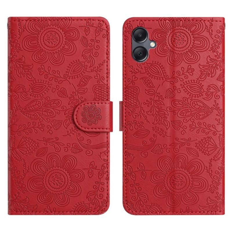 Για Samsung Galaxy A06 4G Floral ανάγλυφο μοτίβο δερμάτινη θήκη τηλεφώνου (Κόκκινο)