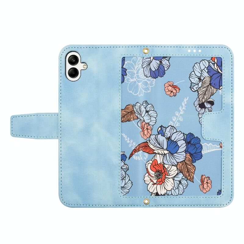 Θήκη τηλεφώνου Samsung Galaxy A06 4G με λουλουδάτο σχέδιο και δερμάτινη υφή, με κορδόνι (Ανοιχτό Μπλε)