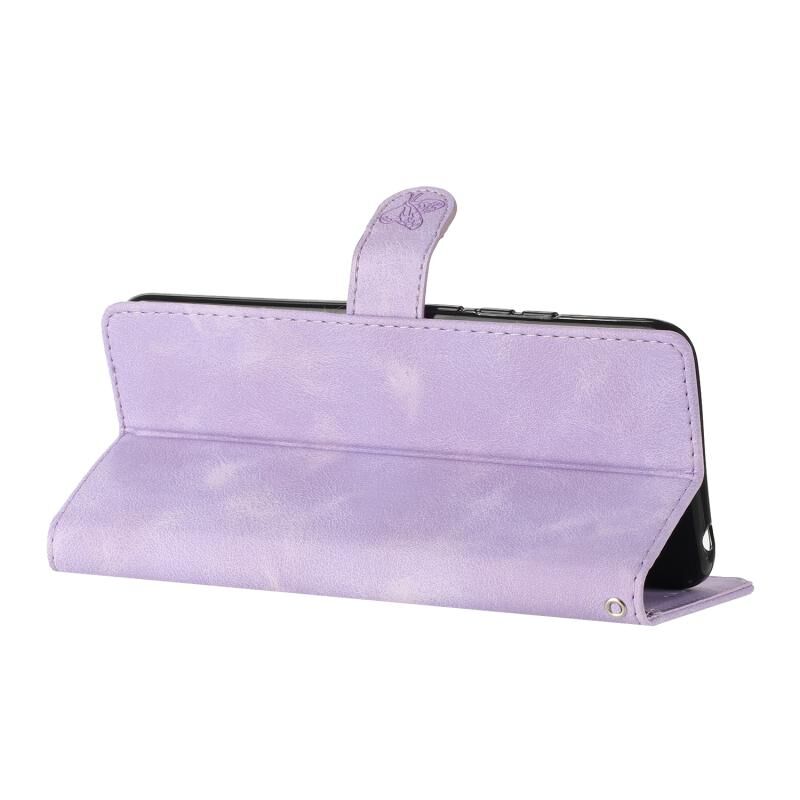 Για Samsung Galaxy A06 4G λουλούδι πεταλούδα ανάγλυφο μοτίβο δερμάτινη θήκη τηλεφώνου (μωβ)