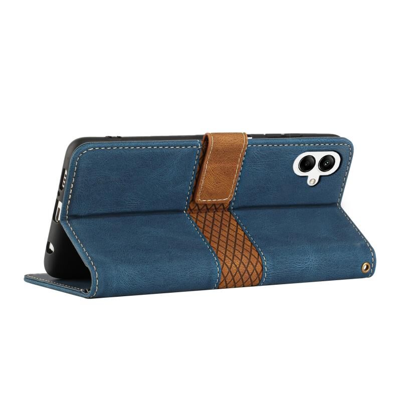 Για Samsung Galaxy A06 4G Πλέγμα ραφή δερμάτινη θήκη τηλεφώνου με κορδόνι (Μπλε)