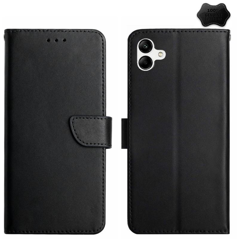 For Samsung Galaxy A06 4G HT02 Genuine Leather Fingerprint-proof Flip Phone Case(Black)