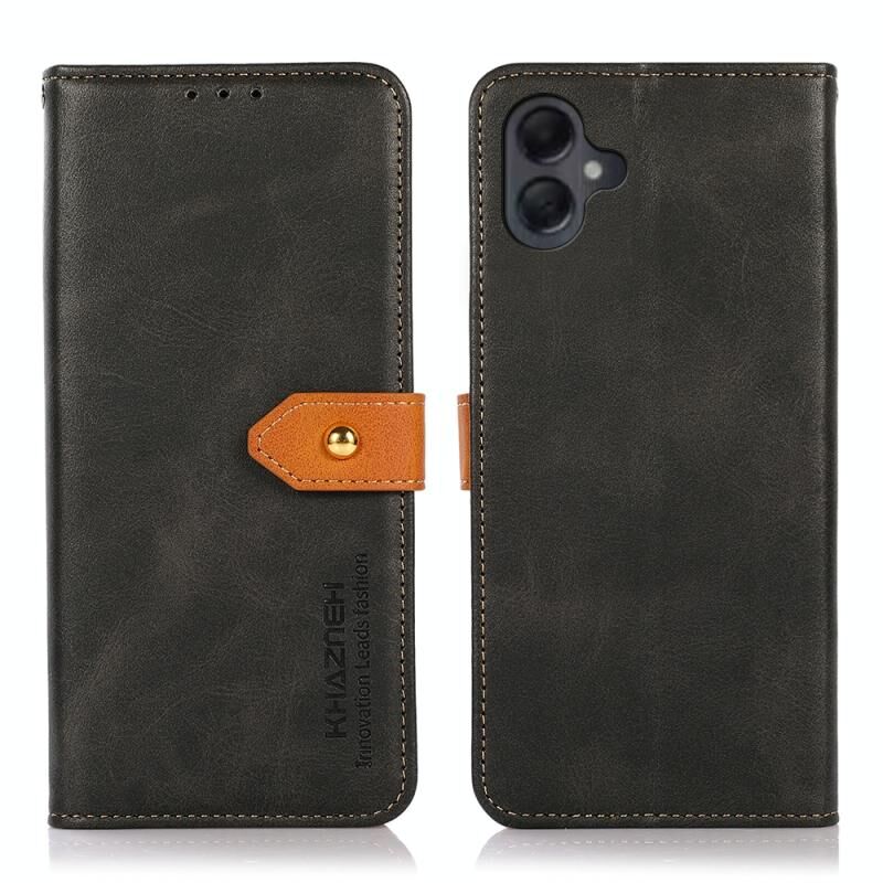 Θήκη τηλεφώνου Samsung Galaxy A06 4G KHAZNEH Διχρωμής Υφής Δέρματος Μοσχαριού, Πτυσσόμενη (Μαύρο)