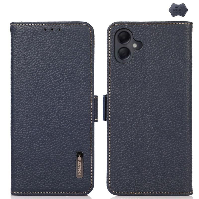 Θήκη τηλεφώνου Samsung Galaxy A06 4G KHAZNEH με μαγνητικό κλείσιμο, από γνήσιο δέρμα Litchi και προστασία RFID (Μαύρο)