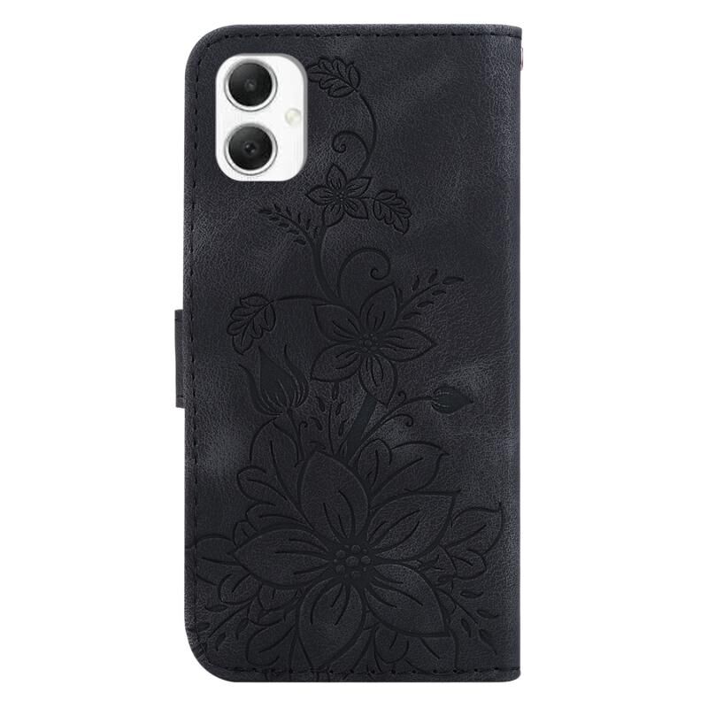 Για Samsung Galaxy A06 4G Lily ανάγλυφη δερμάτινη θήκη τηλεφώνου (Μαύρο)