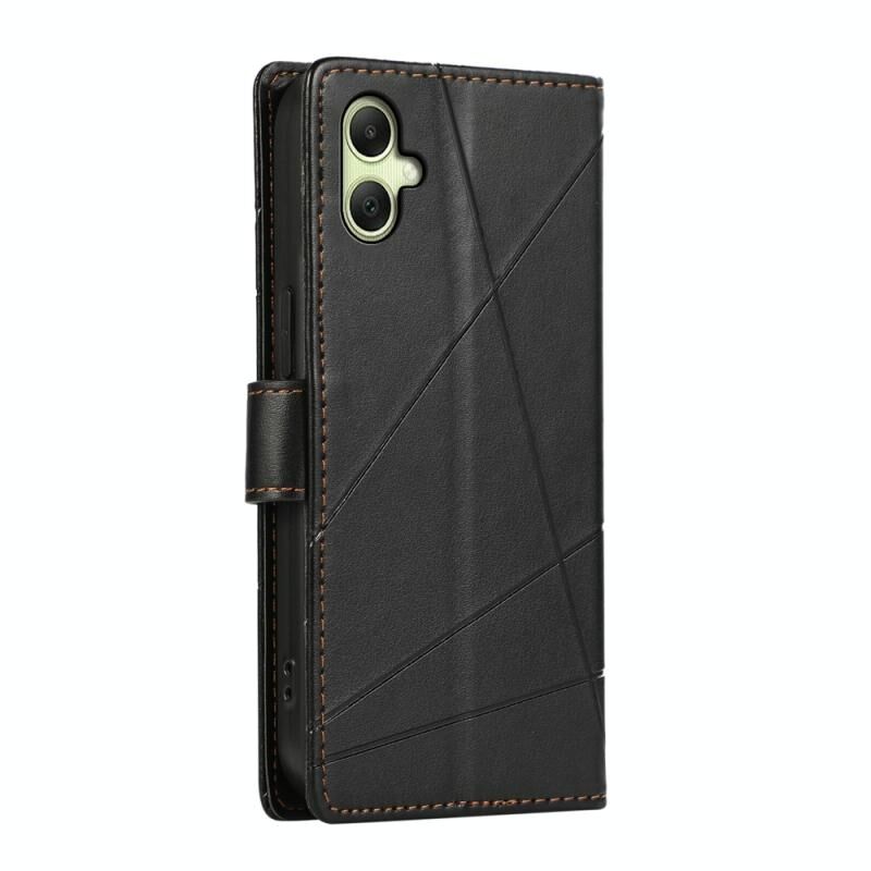 Θήκη τηλεφώνου για Samsung Galaxy A06 4G από γνήσιο δέρμα PU με ανάγλυφη υφή και γραμμή (Μπλε)