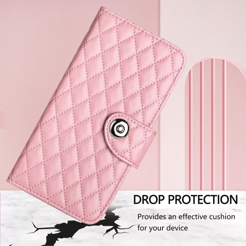 Για Samsung Galaxy A06 4G Rhombic Texture Flip δερμάτινη θήκη τηλεφώνου με κορδόνι (ροζ)