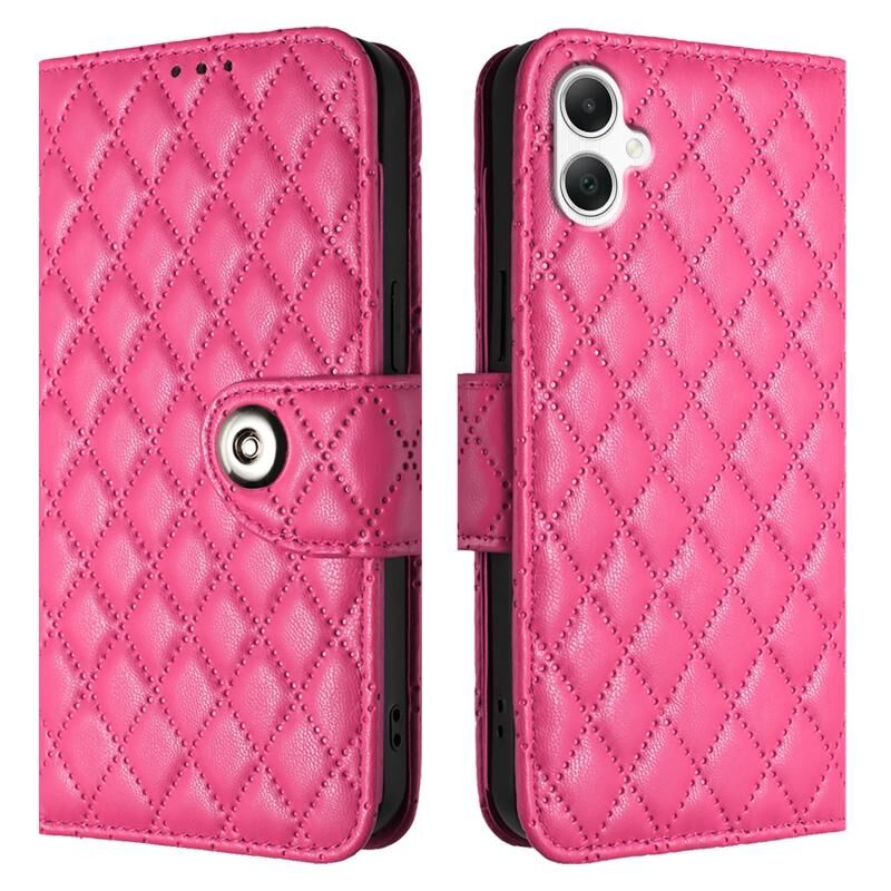 Για Samsung Galaxy A06 4G Rhombic υφή Flip δερμάτινη θήκη τηλεφώνου με κορδόνι (Rose Red)