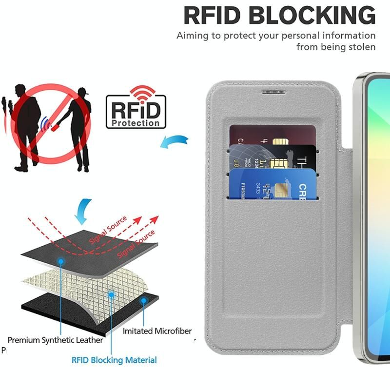 Θήκη τηλεφώνου δερμάτινη με μαγνητική προστασία MagSafe, αντι-κλοπής RFID για Samsung Galaxy A06 4G (Σκούρο Μπλε)