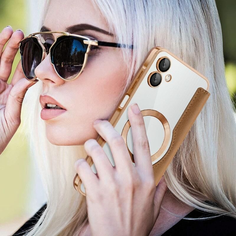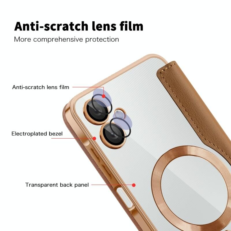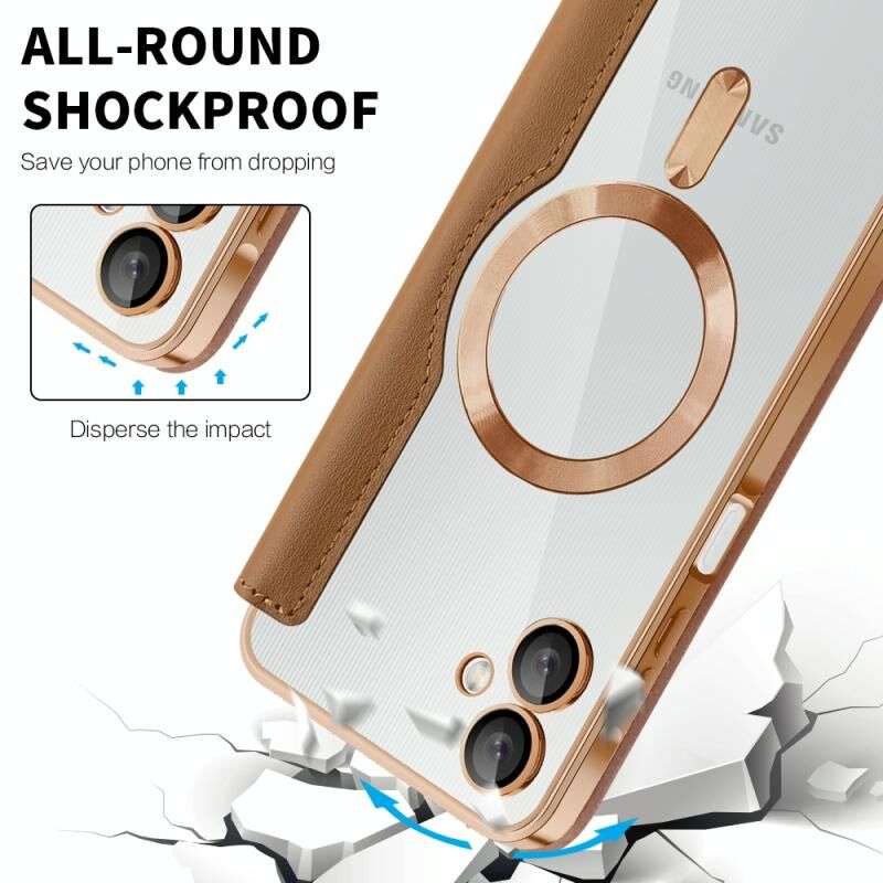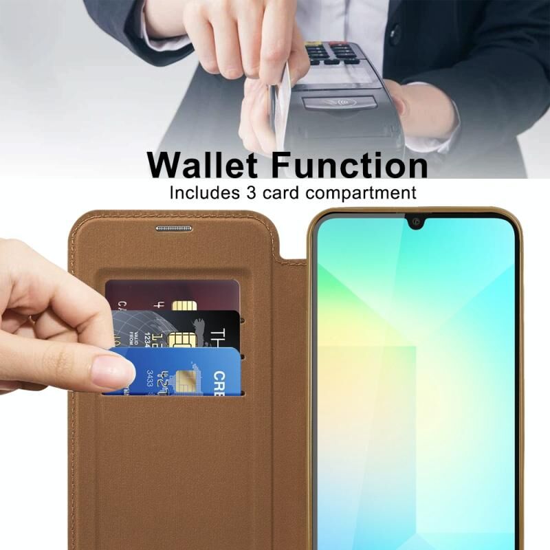 Θήκη κινητού Samsung Galaxy A06 4G Shield MagSafe RFID Anti-theft από δέρμα με σχέδιο ρόμβου (Καφέ)