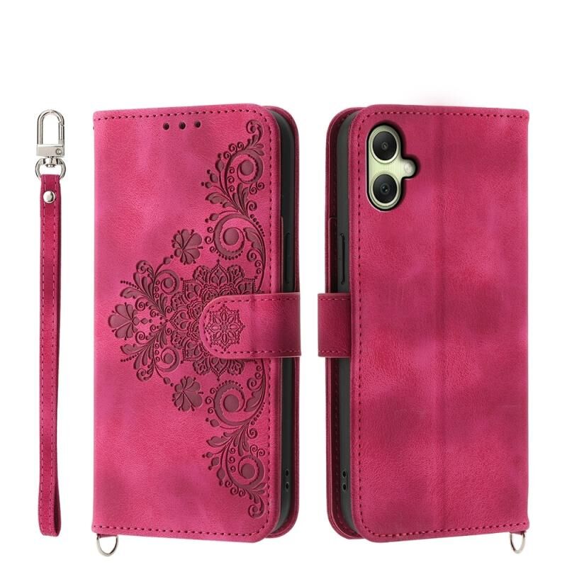 Για Samsung Galaxy A06 4G δέρμα αίσθηση λουλούδια ανάγλυφο πορτοφόλι δερμάτινη θήκη τηλεφώνου (Κρασοκόκκινο)