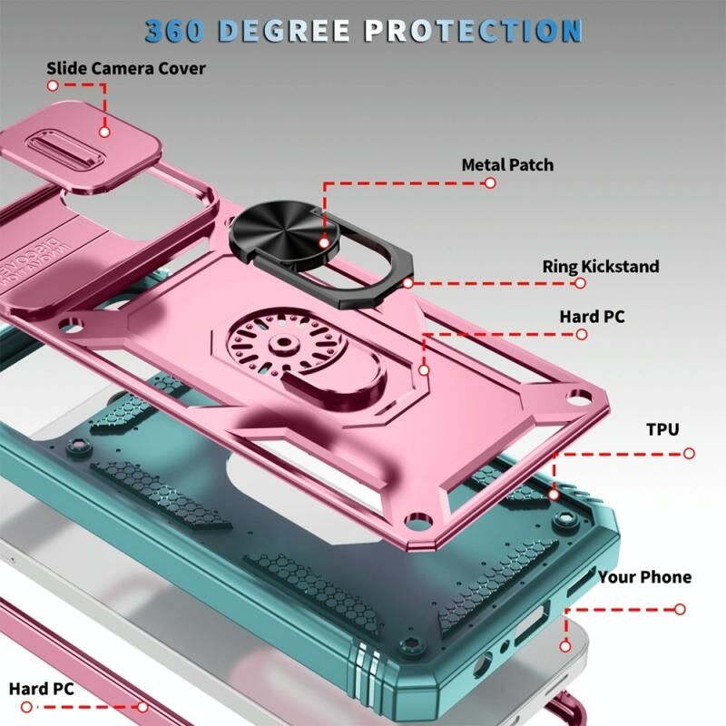 Για Samsung Galaxy A06 4G συρόμενη θήκη τηλεφώνου Camshield TPU + PC με θήκη (Ροζ+Πράσινο)